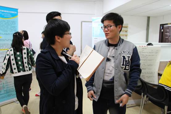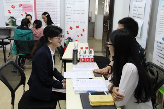 党委副书记崔春红,团委书记万小羽,团委副书记王未未,辅导员孙国成到现场了解了学生与企业的交流情况。