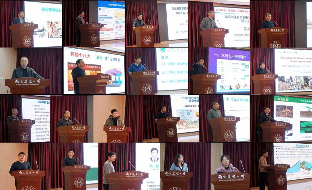 中科院南京地理与湖泊研究所所长张甘霖教授、南京大学谷成教授、中科院南京土壤研究所彭新华研究员、南京信息工程大学应用气象学院冯兆忠教授、南京大学周东美教授五位特邀专家分别做了题为“水稻土的形成演化及其资源环境意义”“有机污染物在土壤矿物界面的非水相催化转化机制研究”“稀土元素示踪土壤团聚体周转:方法、模型与驱动因素”“臭氧污染影响农田生态系统碳氮循环过程研究进展与展望”“稻田系统自由基过程及其环境效应研究”的专题报告。