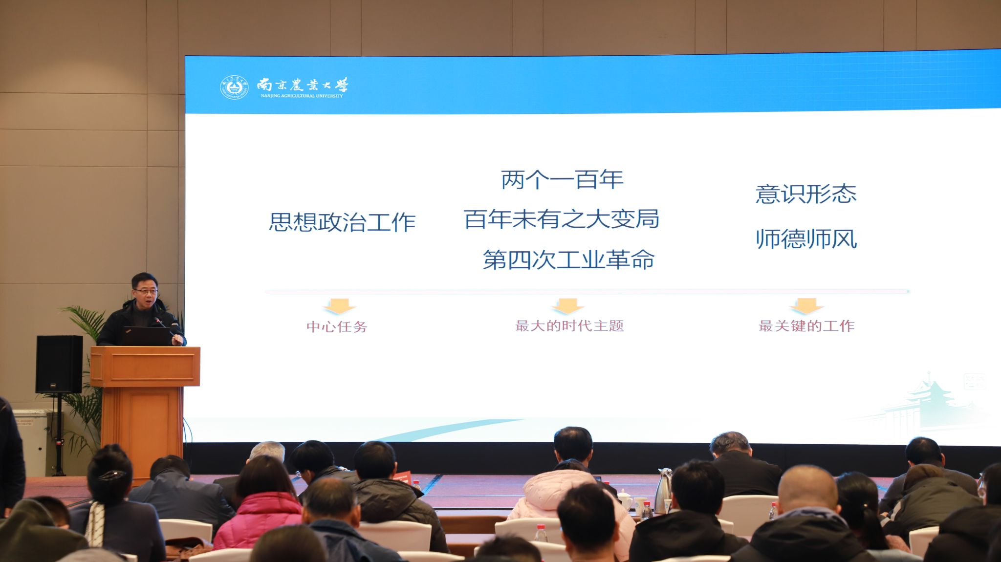 2023年度学术与发展交流会隆重举行。中国工程院院士沈其荣教授和学院200余名教师参加了会议。校党委宣传部(教师工作部)部长全思懋、人力资源处处长邹建文、科学研究院院长周国栋应邀出席并作报告。