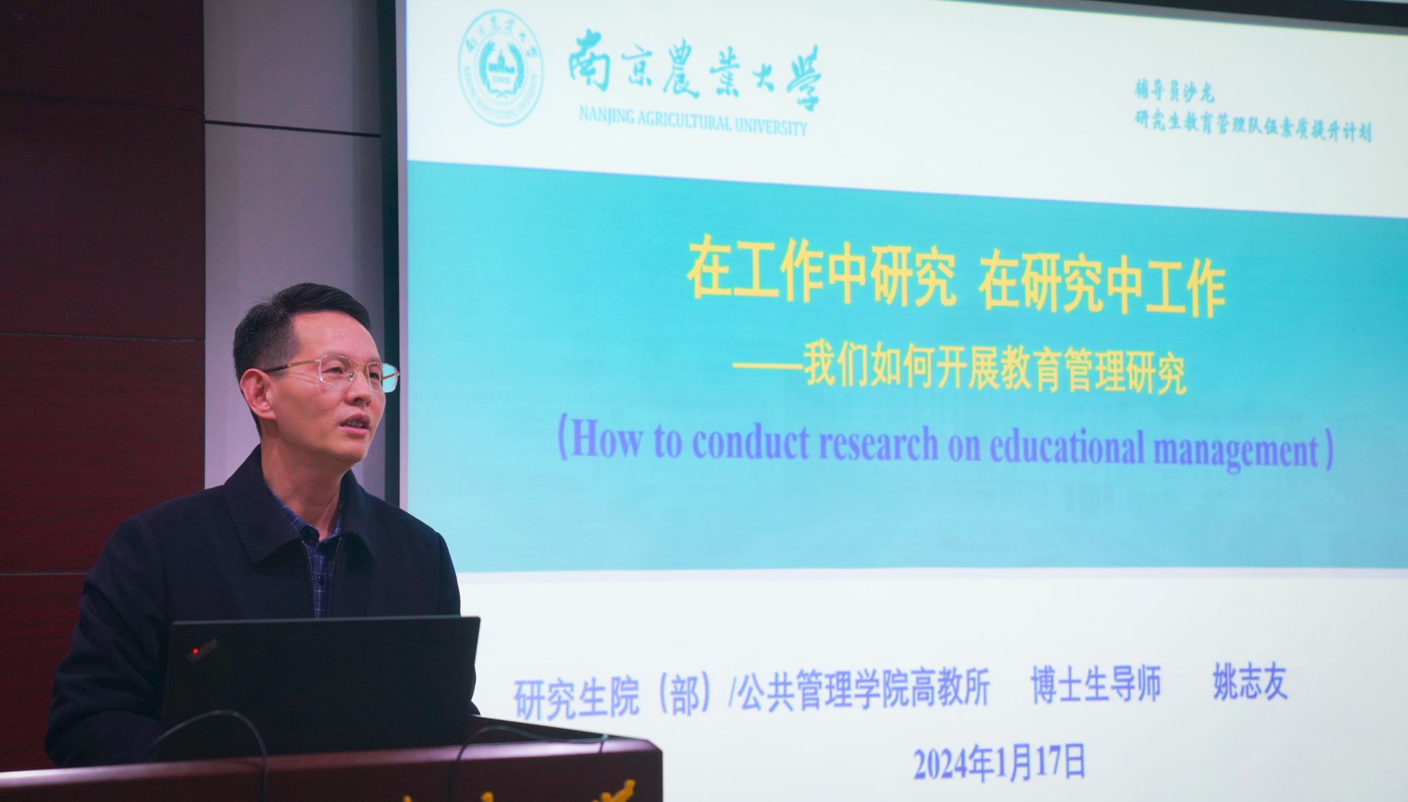 姚志友部长首先为辅导员们作题为《在工作中研究 在研究中工作——我们如何开展教育管理研究》的理论水平提升报告。他从四个方面介绍如何开展教育管理研究,包括我国教育管理研究范式应用的现状、教育管理的循环研究方法、导向论文写作的文献阅读技巧以及如何撰写一篇合格的研究论文。姚部长的报告启发辅导员们将工作视为研究对象,实现工作与研究的有机融合,强调循环研究和综合方法,提升实践逻辑,参会的辅导员们受益匪浅。