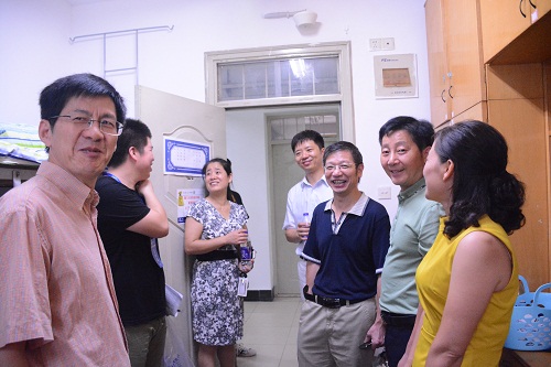 随后,李书记、徐院长一行来到新生宿舍,看望前来报到的新生与家长。各位领导一一查看了学院新生宿舍安全情况,并与新生家长进行了亲切交流。学院领导悉心了解了家长们来自哪里,有没有什么困难等情况,领导们还与新生家长们聊起了家常。最后,崔春红副书记就家长们关心的行李房行李堆积、空调漏水等情况提出了解决方法与要求。“学校、学院对新生照顾得很周到,非常感谢学院领导亲自来看望我们!”资环161的一位新生家长激动得说道。