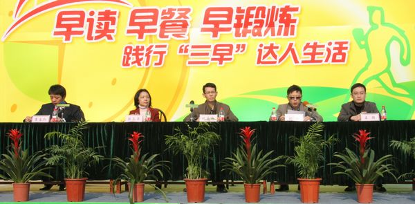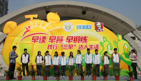 校学工处副处长姚志友、体育部书记段志萍、团委副书记王超、南京肯德基有限公司公共事务部副经理刘勇出席“三早”活动开幕式,院党委副书记崔春红主持开幕式。南京晨报、金陵晚报等多家媒体到现场参与宣传报道。