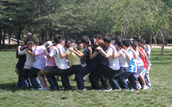 当天,大家做了信任背摔,挑战1000分,高空抓杆,求生墙等活动。信任背摔考验的是团队中每个人对彼此的信任及团队的合作精神;挑战1000分则考验了团队领导的领导能力与组织协调能力。下午进行的高空抓杆,要求每一位同学在有绳索保护的情况下,爬上近10高的一个圆盘上,再跳起去抓悬挂在前方的横杆。活动中,大家彼此鼓励,有些害怕的同学也在大家的鼓励下成功完成本项活动。最后一项求生墙,要求同学在彼此的帮助下,不借助外物,全部翻过四米高的墙。这项活动不仅仅要求大家默契的配合,还要求个人的身体素质。而且当一种方案失败时,需要大家及时的改变策略。最后在大家共同努力下,全体成员都成功的翻上了高墙。所有活动结束后,大家对自己从今天活动中学到的及得到的锻炼进行了交流。白天活动结束后,大家在情侣园进行了烧烤。