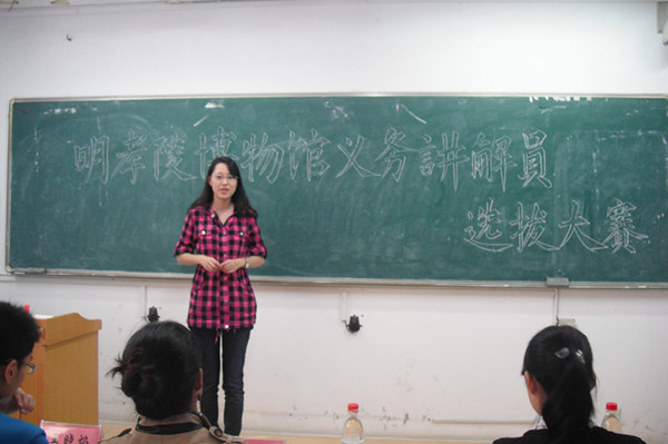 学生会青年志愿者协会举办的明孝陵义务讲解员选拔大赛在教学楼B201和B205同时进行。担任本次比赛评委的是:明孝陵博物馆宣教部主任臧卓美,副主任蔡涛,91热爆