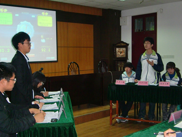 比赛分两场进行,第一场是资环112(正方)对阵环科112(反方)。正方观点为当前中国同性恋婚姻应该合法化,反方观点是当前中国同性恋婚姻不应该合法化。11月11日恰好是神棍节,在这天进行如此重口味的辩题,对于现场观众来说还是很有娱乐观赏性的。经过你来我往,言辞犀利的语言战争后,正方获得了本场辩论赛的胜利,并且正方一辩朱洁当选为本场比赛的最佳辩手。