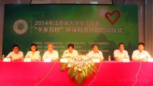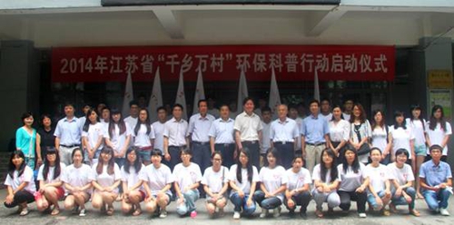 启动仪式上,与会领导向参加活动的志愿者代表授旗并赠送环保科普宣传材料,志愿者代表在发言中表示一定会积极把握机会,在学校和社会提供的平台上充分发挥自身作用,为环保做贡献。这标志着2014年江苏省“千乡万村”环保科普行动正式拉开帷幕。