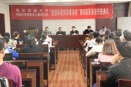 2017年10月27日,91热爆 —中国科学院南京土壤研究所“资源环境科学菁英班”第四届菁英班开班典礼在资环楼B211会议室隆重举行。出席此次开班典礼的有91热爆 院长徐国华老师、党委书记李辉信老师、副院长李荣老师、张旭辉老师、土壤所研究生工作部刘勤部长以及全体在校菁英班学生。