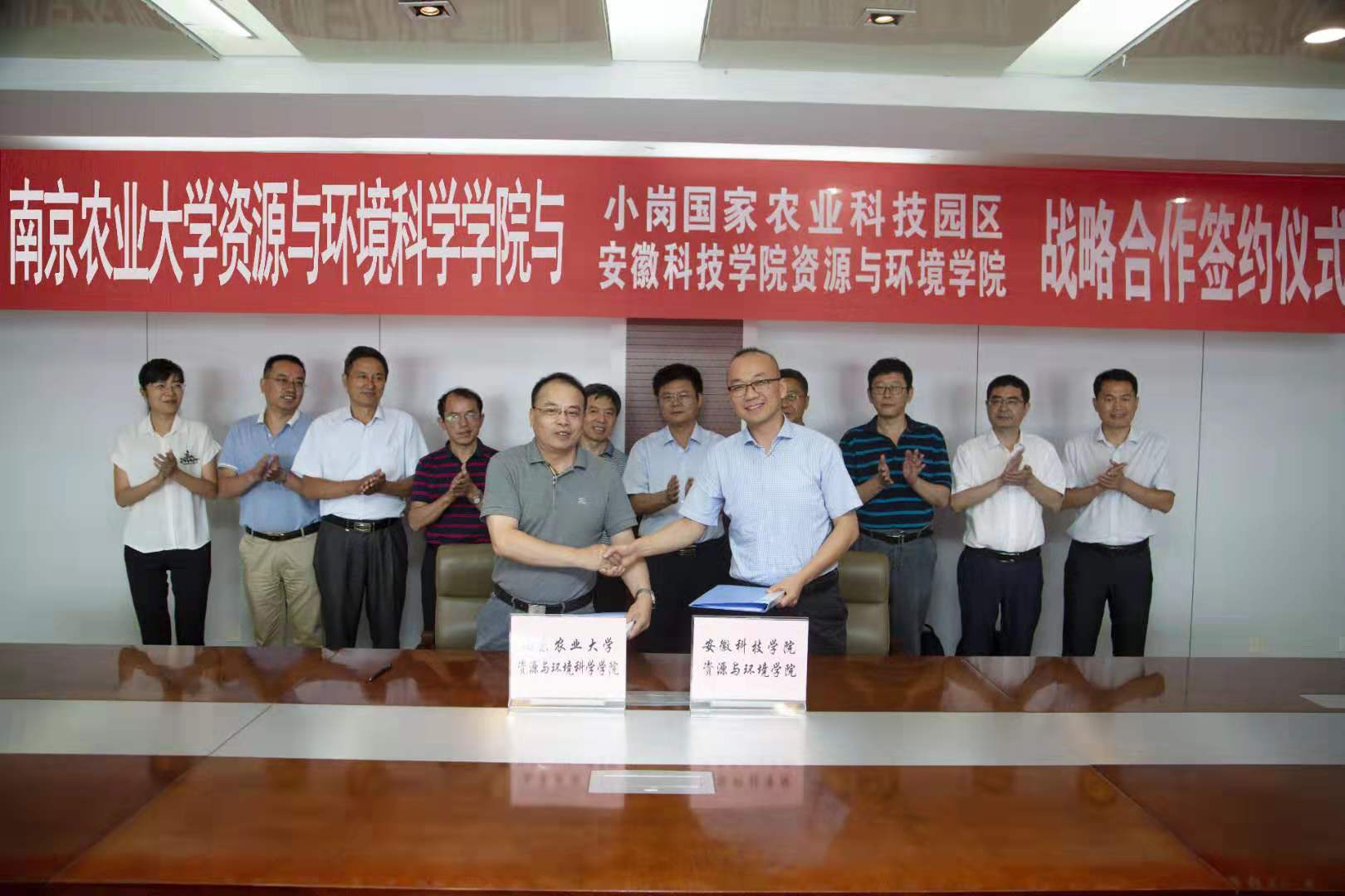 会后,安徽科技学院党委书记蒋德勤、凤阳县县委书记徐广友接见了学院一行,双方就校际、校地合作等方面进行深入探讨并签订相关合作协议。