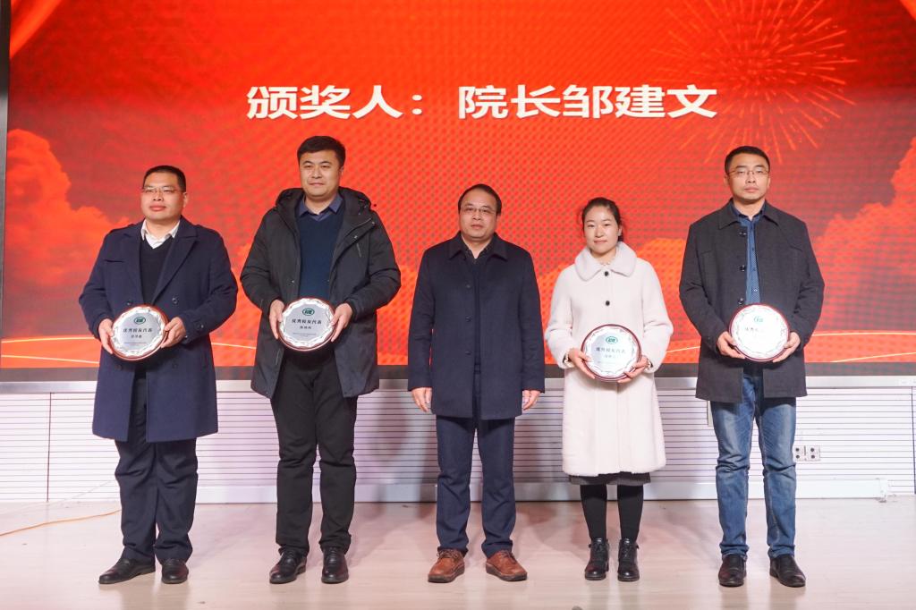 邹建文为优秀校友代表颁发奖杯。
