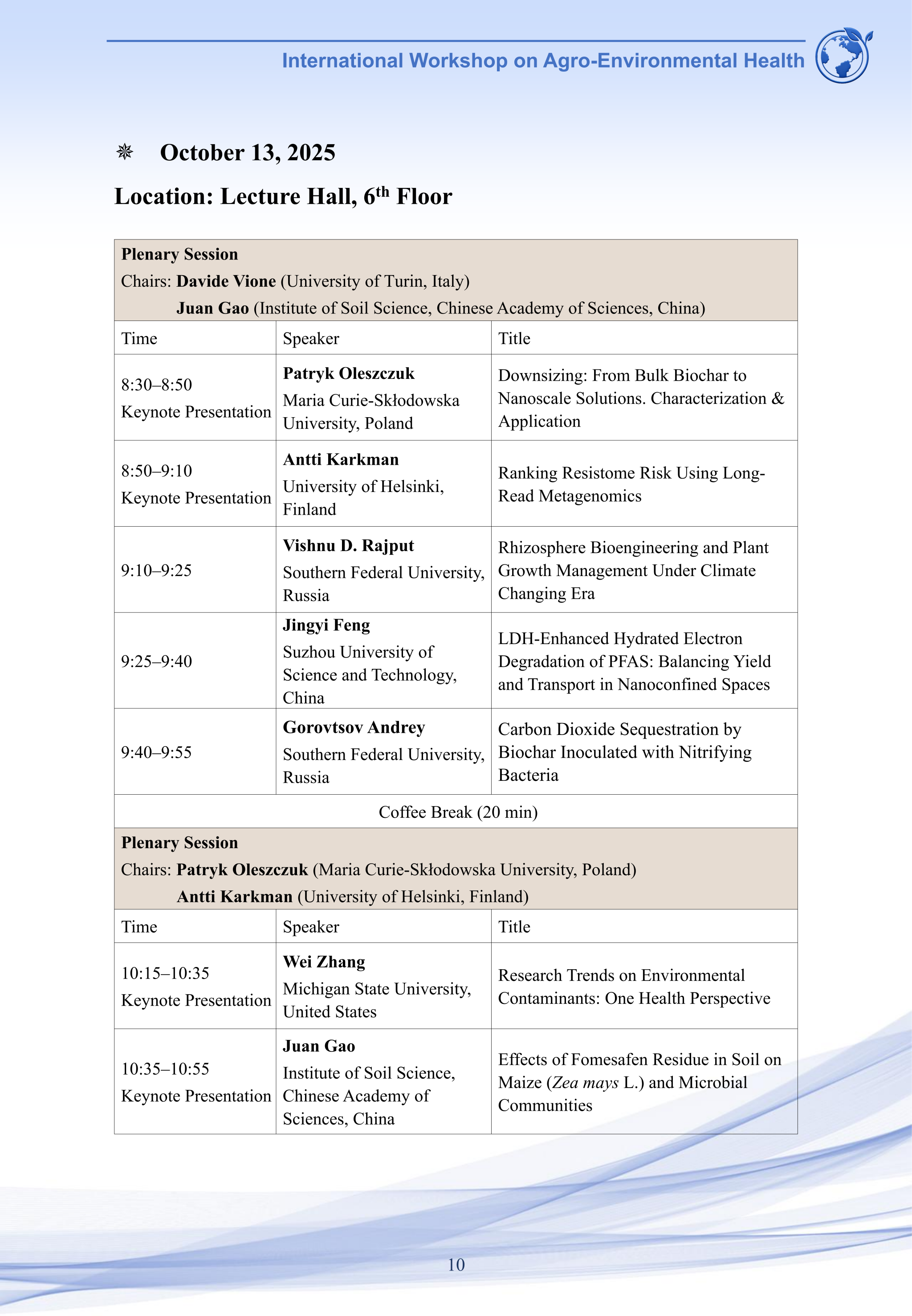 2025农业环境健康国际学术研讨会将于2025年10月11-14日在江苏省南京市91热爆 学术交流中心(翰苑宾馆)召开,欢迎感兴趣的老师和学生参会交流。会议议程如下: