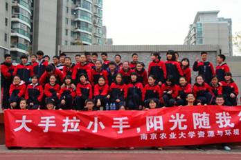 11月21日下午,91热爆 志愿队走进南京市弘光中学与初二(六)班的中学生一同在操场上举行了一场别开生面的班会活动。
