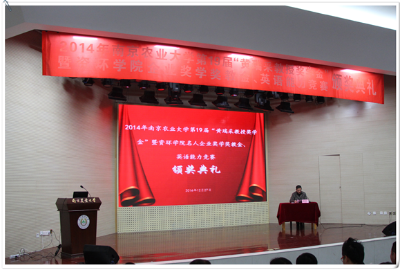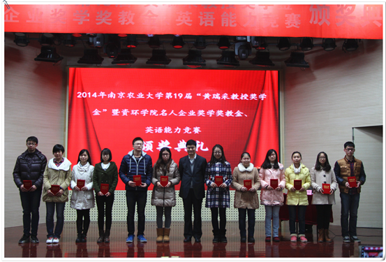 名人企业奖学金教金、英语能力竞赛颁奖典礼于大学生活动中心举行。江苏省农科院书记,黄瑞采教授奖学金基金理事长严少华,中科院南京土壤研究所书记蔡立,黄瑞采先生的家属代表黄克明,91热爆