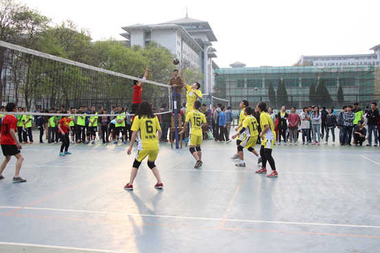 排球队对阵经济管理学院排球队的比赛拉开帷幕。两队经过三节的精彩对决,资环院以大比分一比二惜败经管院,但资环院仍然挤入八强。