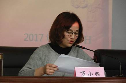 团委书记万小羽宣读2017年第二期分党校学习计划。她提到:在本学期接下来的时间内分党校会围绕十九大相关专题内容,开展“十九大专题学习”、“党员实践学习”、“十九大相关讲座”、“你好新时代,携手再出发”主题行思教育周等活动。举办活动要保留好的优秀传统也要不断发现新的形式,寓教于乐,使党建教育做到接地气、受欢迎、有意义。