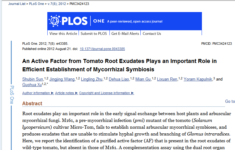 An Active Factor from Tomato Root Exudates Plays an Important Role in Efficient Establishment of Mycorrhizal Symbiosis