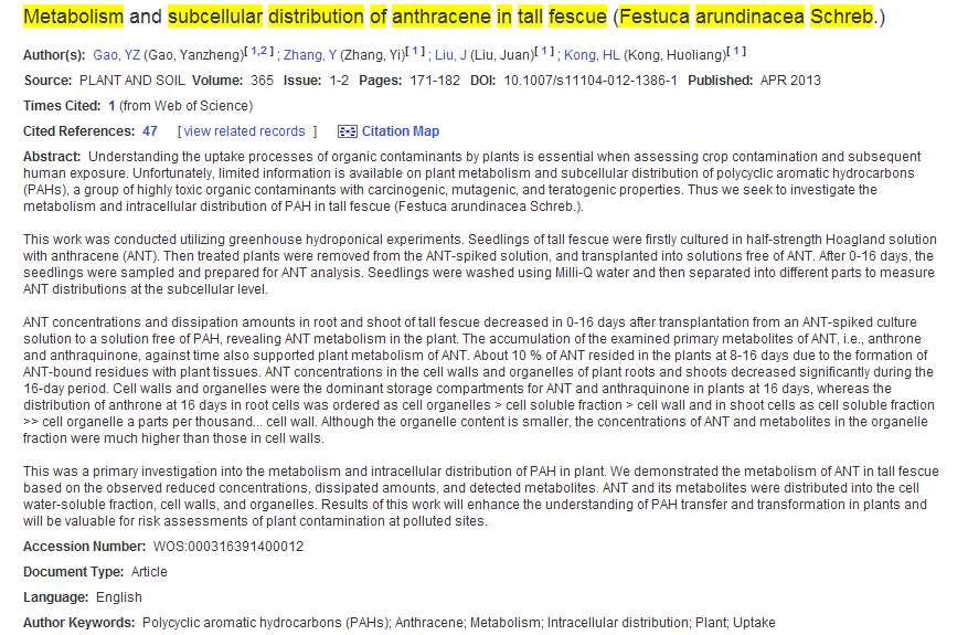 上一篇:Metabolism and subcellular distribution of anthracene in tall fescue (Festuca arundinacea Schreb.)