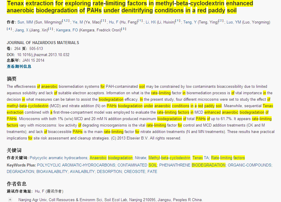 下一篇:Tenax extraction for exploring rate-limiting factors in methyl-beta-cyclodextrin enhanced anaerobic biodegradation of PAHs under denitrifying conditions in a red paddy soil