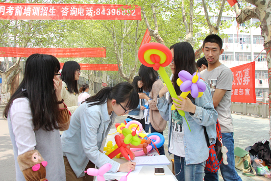 此次活动以展板、条幅以及送礼物的形式向全校同学进行宣传。活动现场,志服部的工作人员为有意向申请讲解志愿者的同学提供细致、全面的服务。