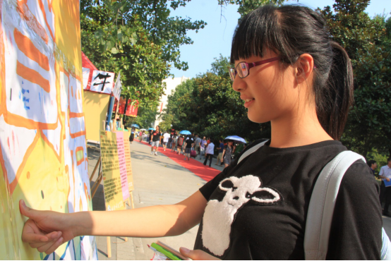 的学生和老师都投入了很多心血。在学院的文化宣传点,新生在印有“资环青年”四个字的画板上留下自己的手印。学院希望可以通过这样的仪式,拉进与新生之间的距离,让新生们真正感受到自己已成为南农的一员,资环的一员。新生纷纷和学院吉祥物绿绿合影,留下了自己在南农成长的第一印记。