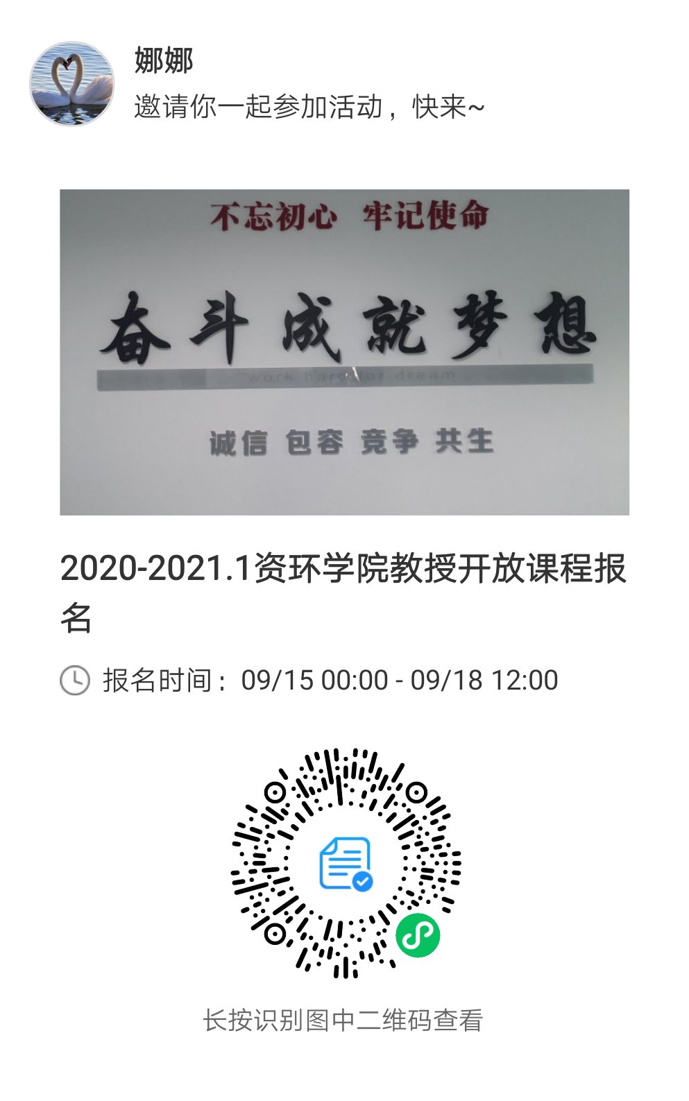 1.生命科学学院关于选修2020-2021学年第一学期“教授开放研究课程”的通知,请直接扫描小程序码报名,(选课时间:2020年9月15日-2020年9月21中午12:00),谢谢!