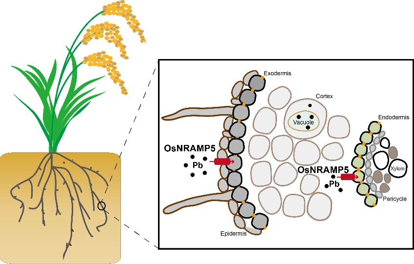铅是毒性最强的重金属元素之一,且在环境中分布广泛,被联合国世界卫生组织列为影响人类公共健康的十大污染物之一。过量Pb暴露会对人体健康造成一系列不良影响。此外,Pb是一种神经毒素,过量暴露可导致儿童认知发育迟缓,智力下降。食物是人体Pb暴露的主要来源之一,其中,大米对膳食Pb摄入贡献较大。种植在未受污染土壤的水稻籽粒Pb含量通常较低,但人为活动(如采矿、金属冶炼和大气沉降等)造成的土壤污染会增加水稻籽粒中Pb的积累。水稻根系如何吸收Pb的分子机制迄今尚不清楚。