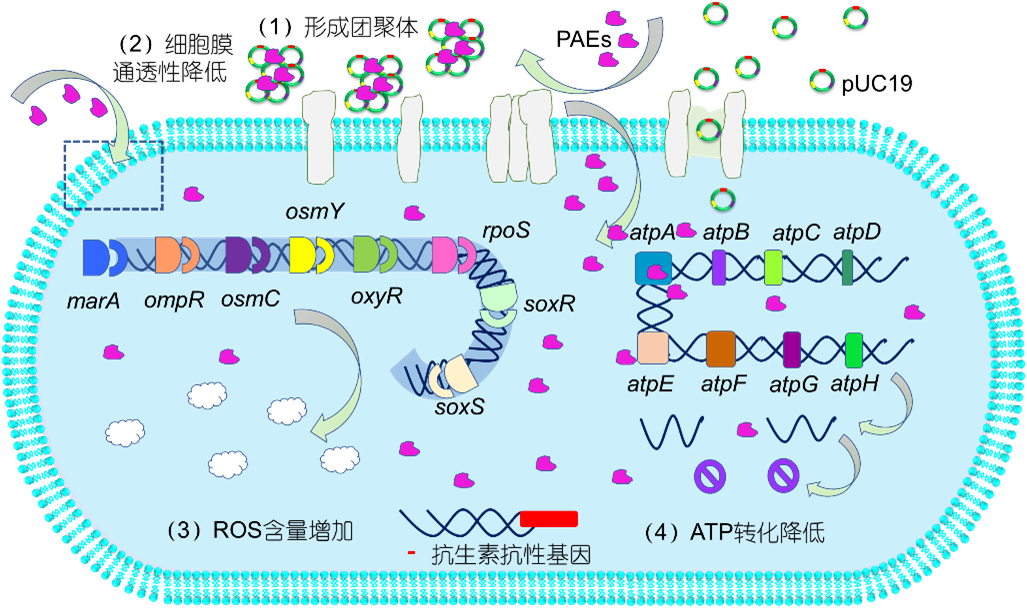 图2. PAEs抑制大肠杆菌感受态细胞转化ARGs的作用机制