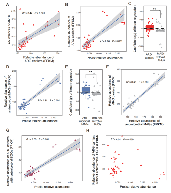 该项研究揭示了土壤生态系统中原生动物捕食行为与抗生素耐药基因扩散之间的潜在关联,不仅丰富了对土壤生态系统中微生物相互作用的理解,也为控制抗生素抗性传播提供了新的理论依据,管理土壤原生动物或许能够成为控制抗生素抗性传播的重要手段。未来的研究将进一步探索如何通过精准调控土壤微生物生态过程(比如土壤原生动物与细菌互作关系)来有效管理抗生素抗性扩散。